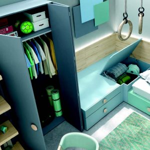 Sistemas Box con distintas medidas de cajones y armario con puerta plegable y arcón, estanterías y zapatero… pensado para todo